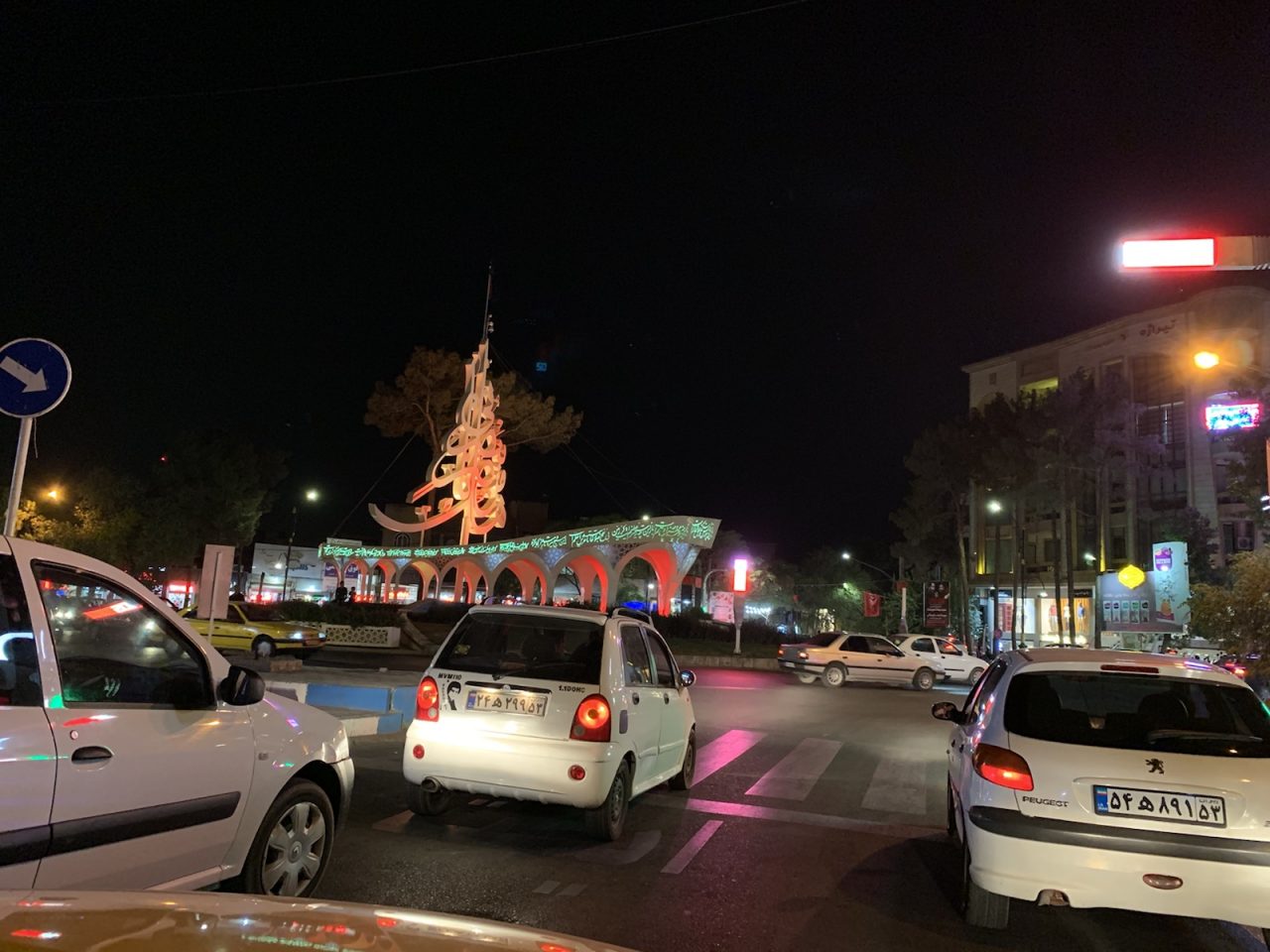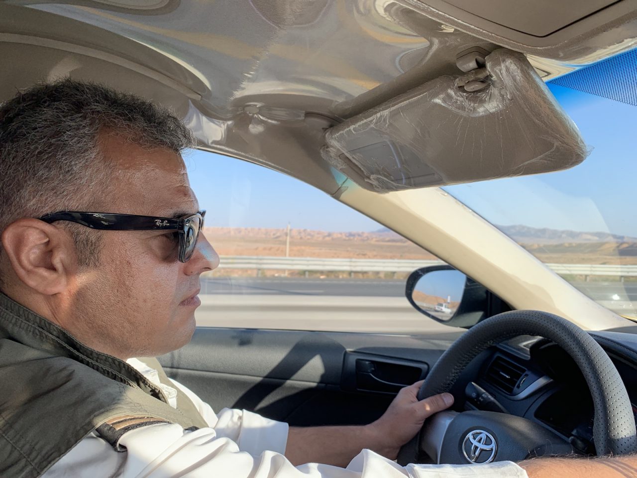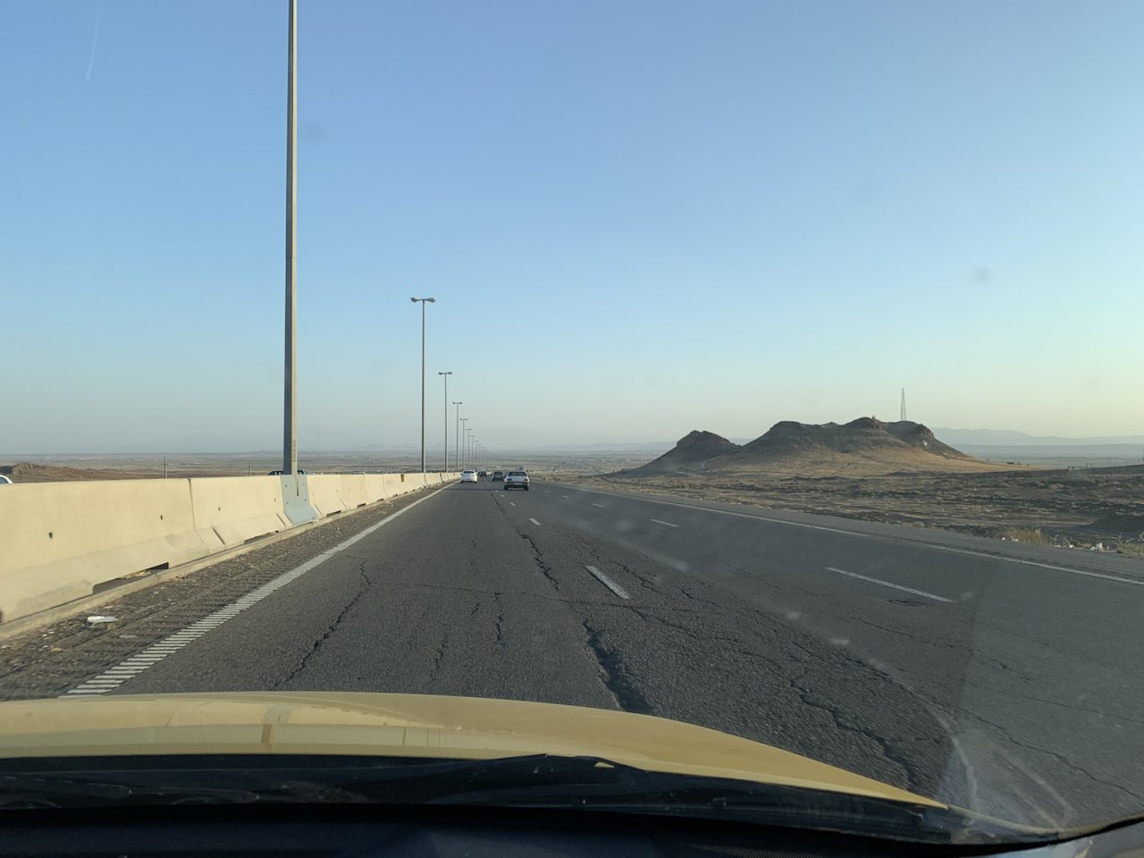Unser Fahrer Amir steuert sein „Yellow Taxi“ zuerst durch den dichten und sehr hektischen Abendverkehr in Teheran, dann über eine gut ausgebaute Autobahn.