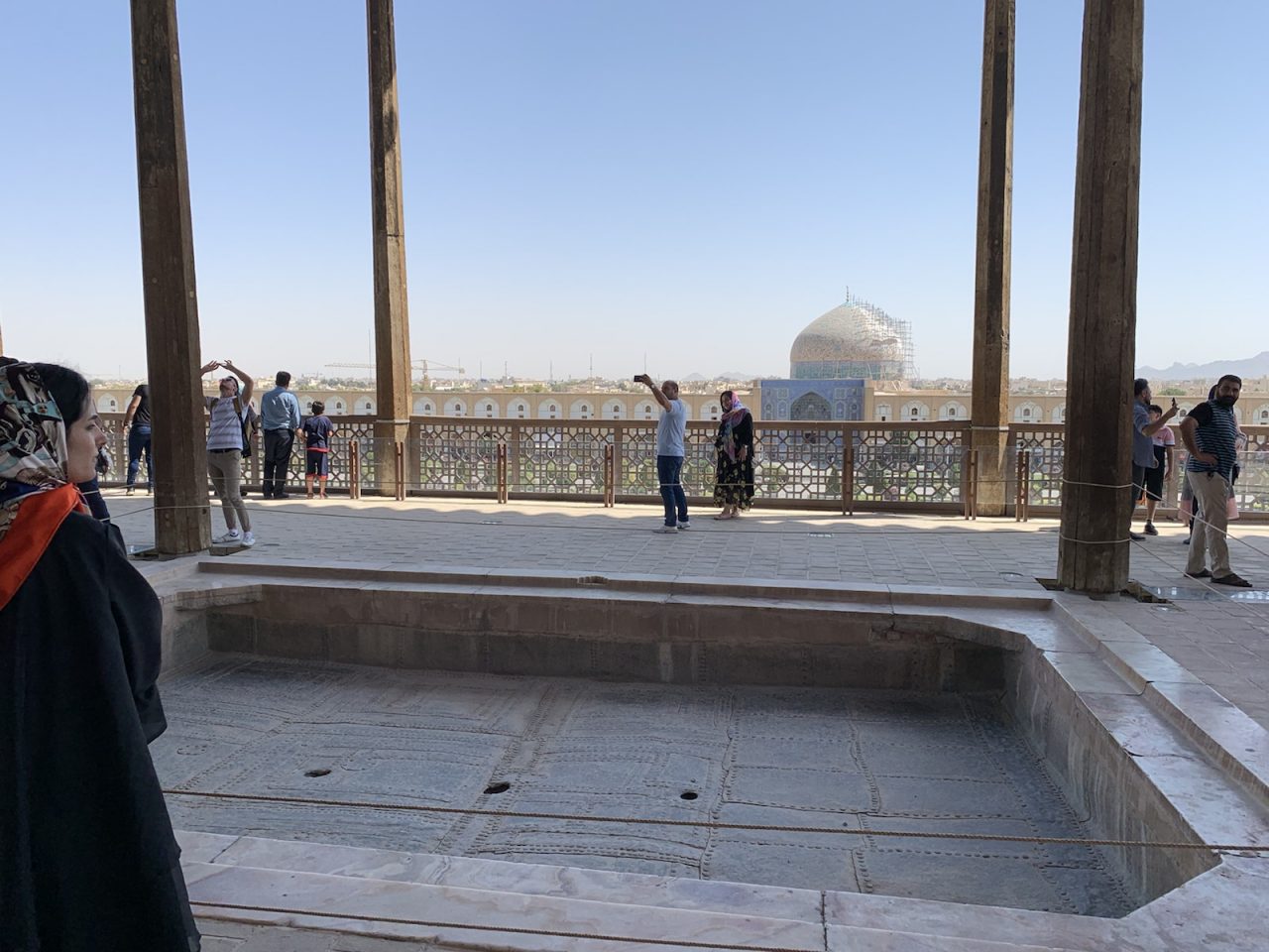 An dem Platz liegt der Aali Qapu Palast, mit seiner imposanten „Terrasse“, von der aus der Scheich das Treiben beobachten konnte.