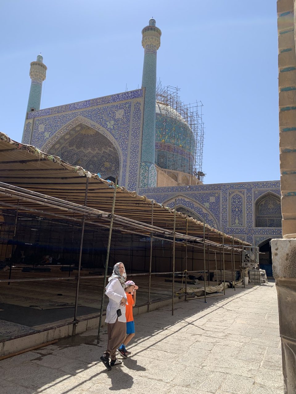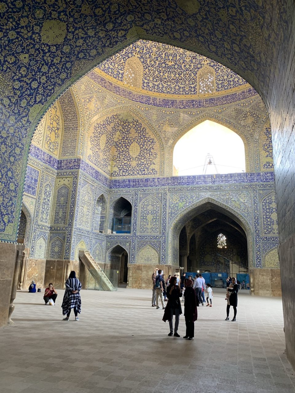 Und dann ist da noch die geradezu unglaubliche Imam Moschee, die wir aber leider nicht in ihrer vollen Pracht genießen konnten, da der Vorplatz durch ein riesiges Zelt verunstaltet wurde, das für das vorangegangene Ashura Fest aufgebaut worden war.
