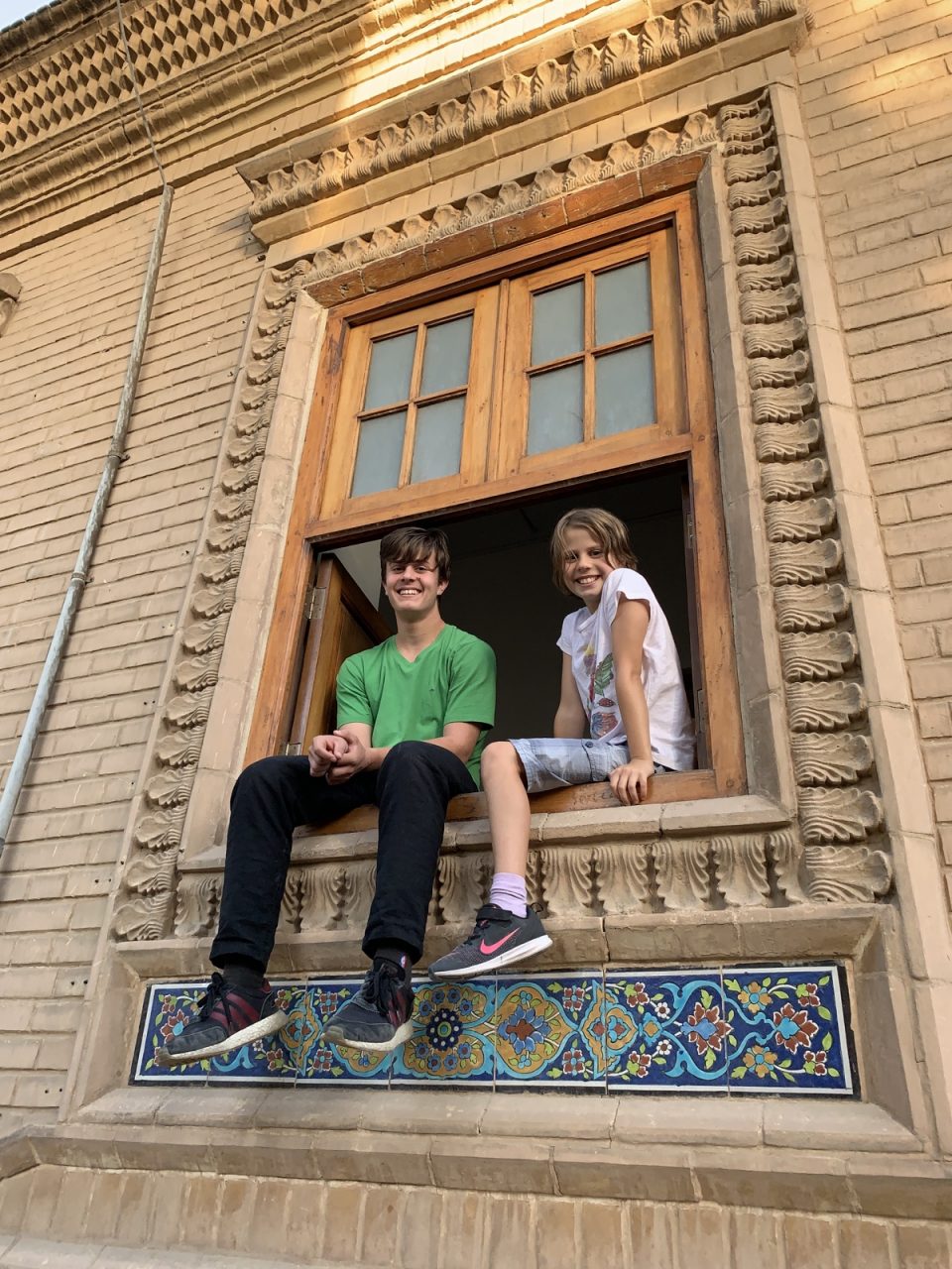 Die Kinder erforschen den Feuertempel auf ihre Art.