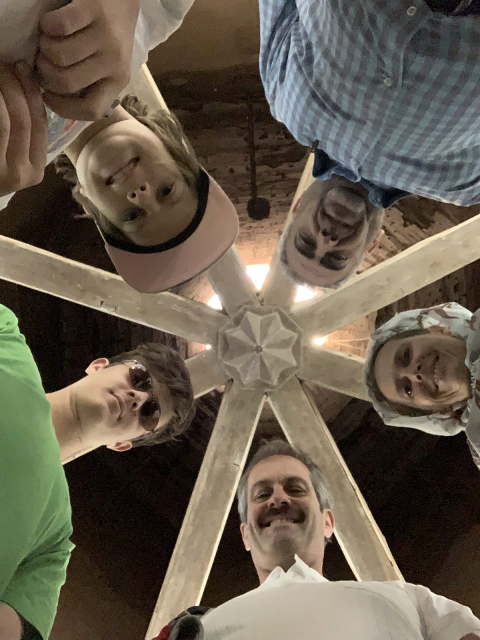 Blick nach oben in die untere Öffnung des Windturms.