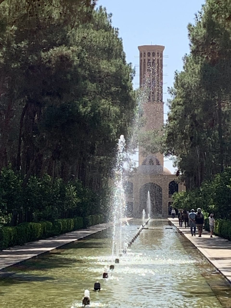 Der mit über 30 Meter angeblich weltweit höchste dieser Windtürme steht hier in Yazd, und gehört zu einem tollen Gebäude inmitten eines wunderschönen Gartens (nicht zu vergessen, wir sind in einer Wüste).