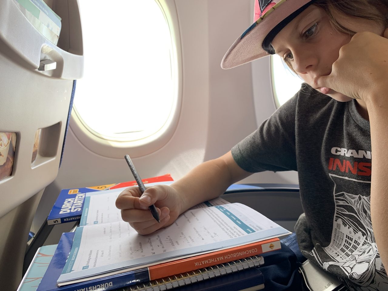 Valerie nützt die Zeit für ihre Englisch- und Mathematik Übungen.