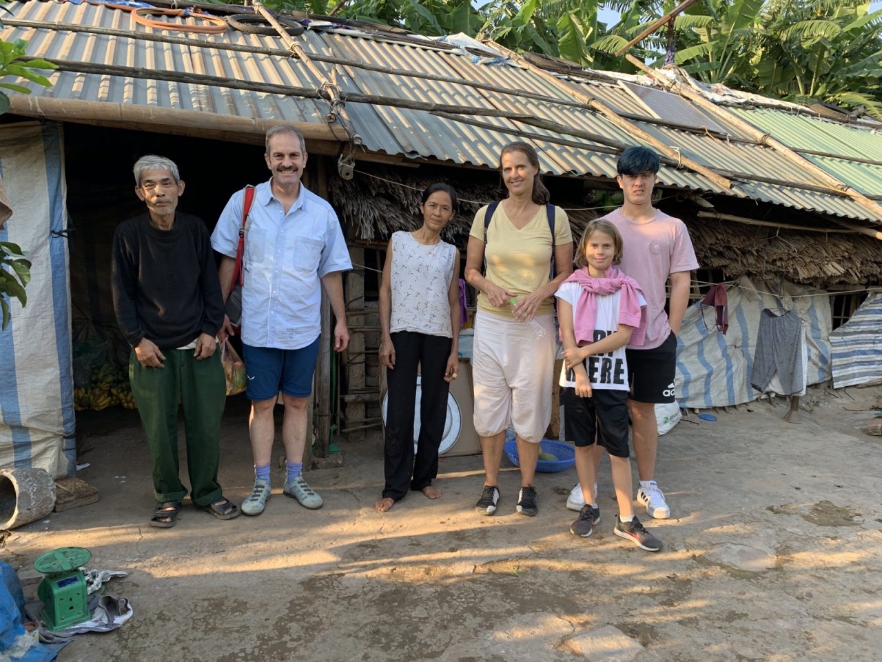 Wir besuchen eine Bauernfamilie, die seit 30 Jahren in einer Bambushütte auf der Insel lebt.