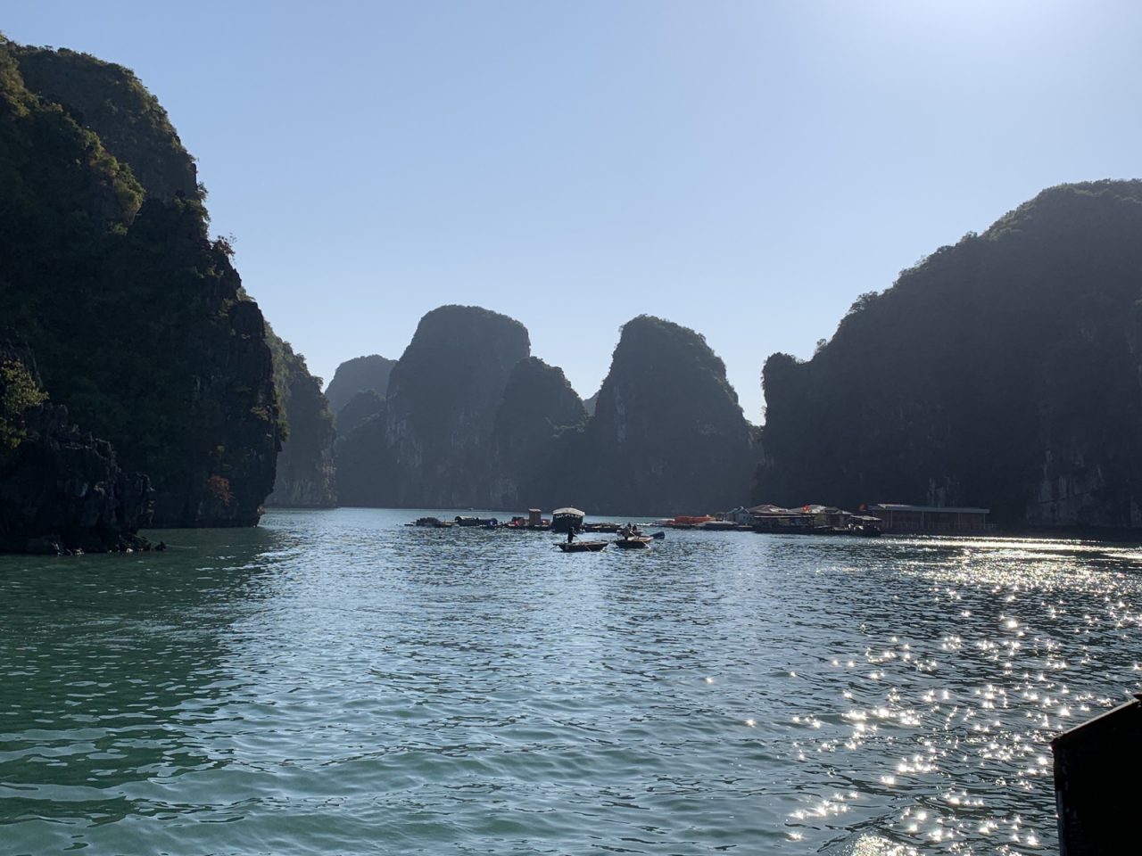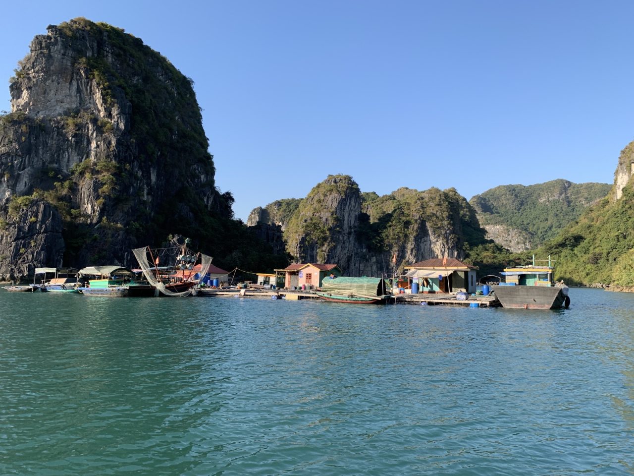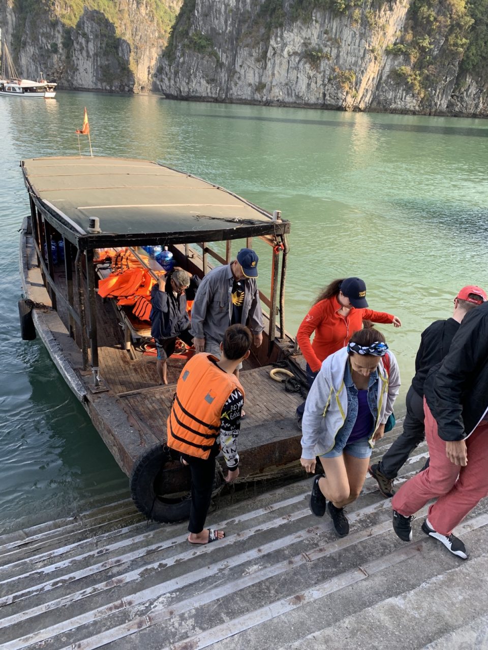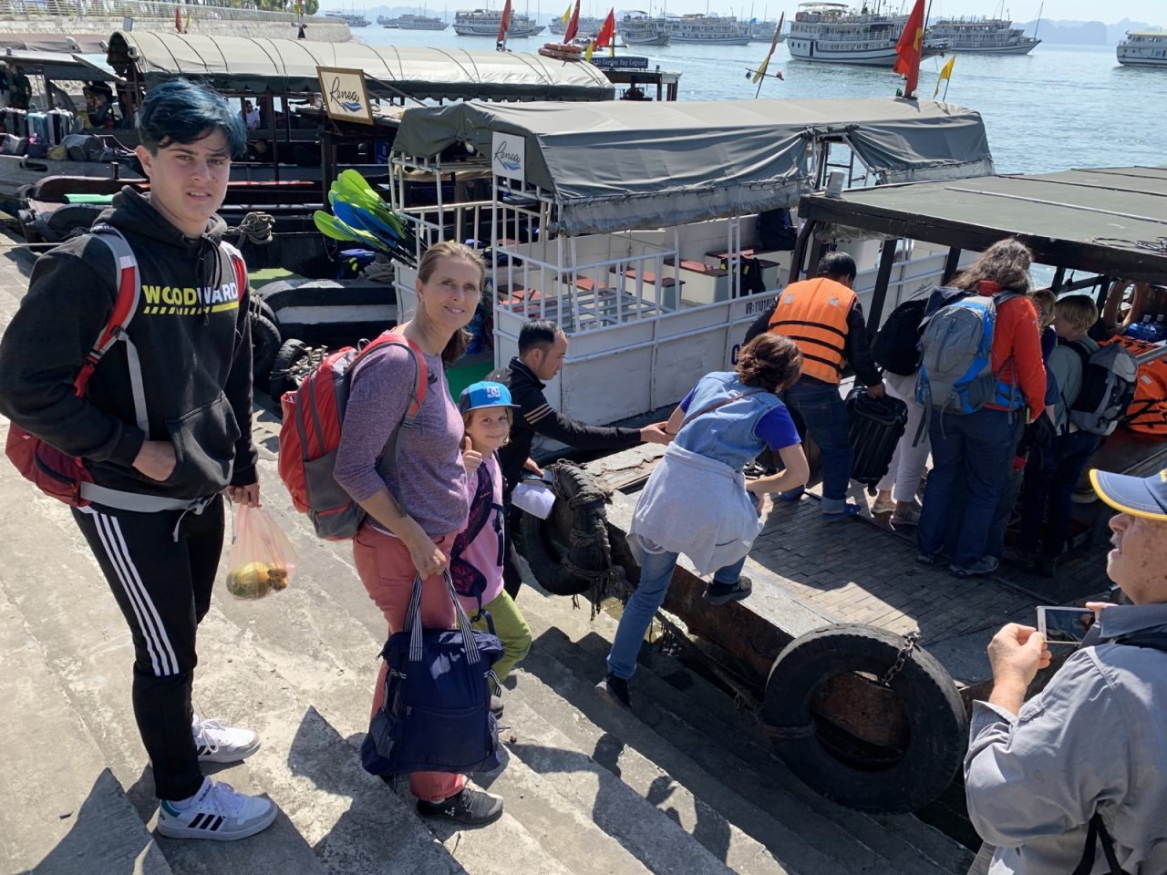Vor diesem Ort liegt im Meer die weltberühmte Ha Long Bucht. Eine Dschunke wird uns bis zum nächsten Tag mittags durch diese einzigartige Szenerie fahren.