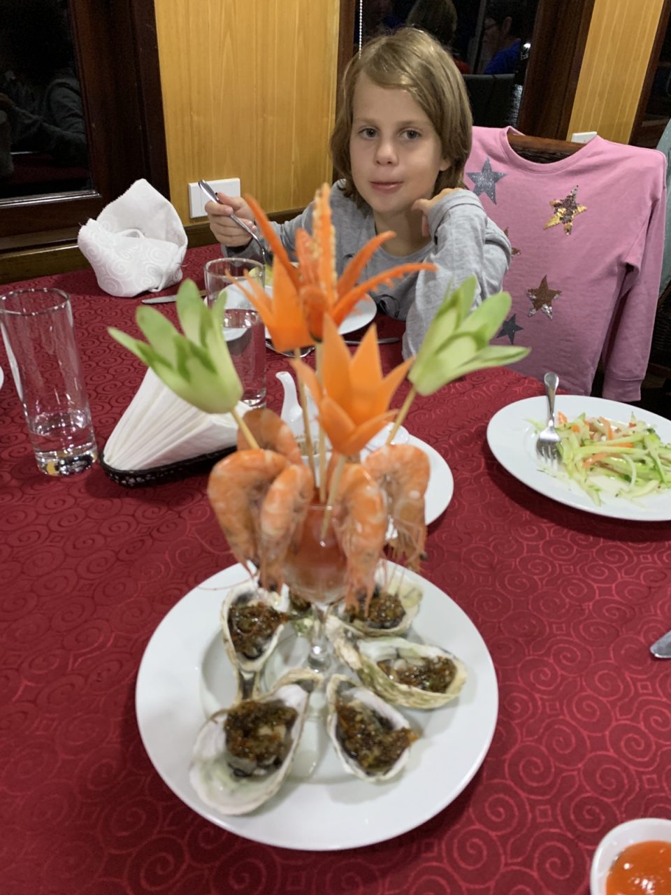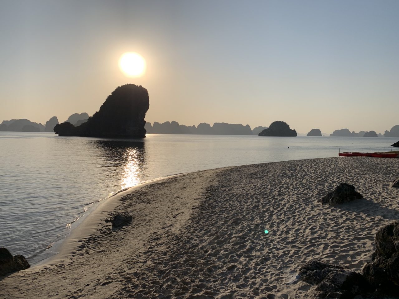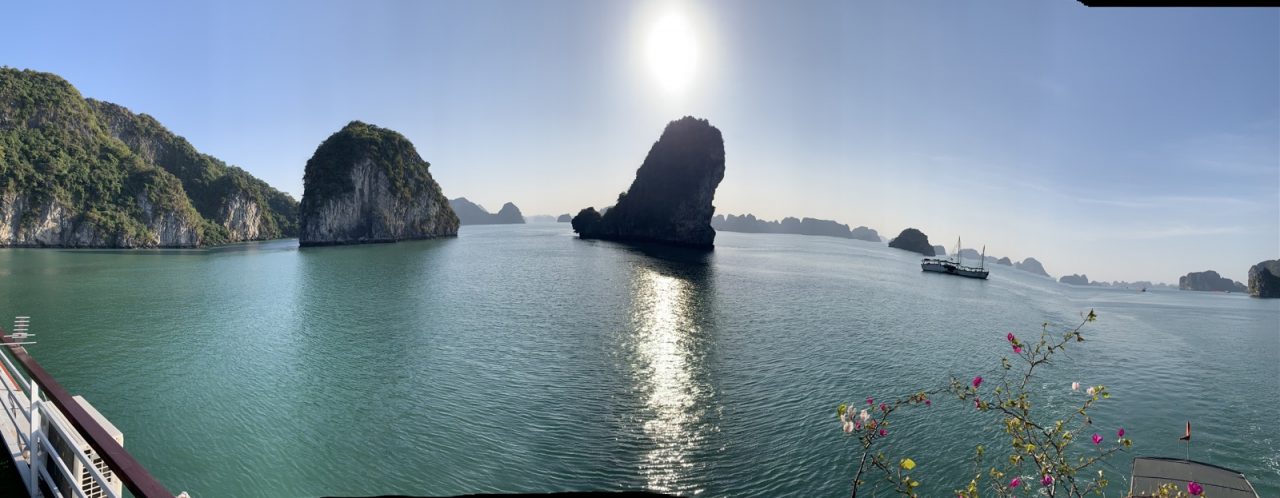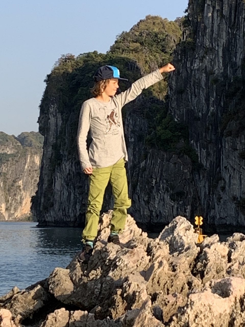 Vor diesem Ort liegt im Meer die weltberühmte Ha Long Bucht. Eine Dschunke wird uns bis zum nächsten Tag mittags durch diese einzigartige Szenerie fahren.