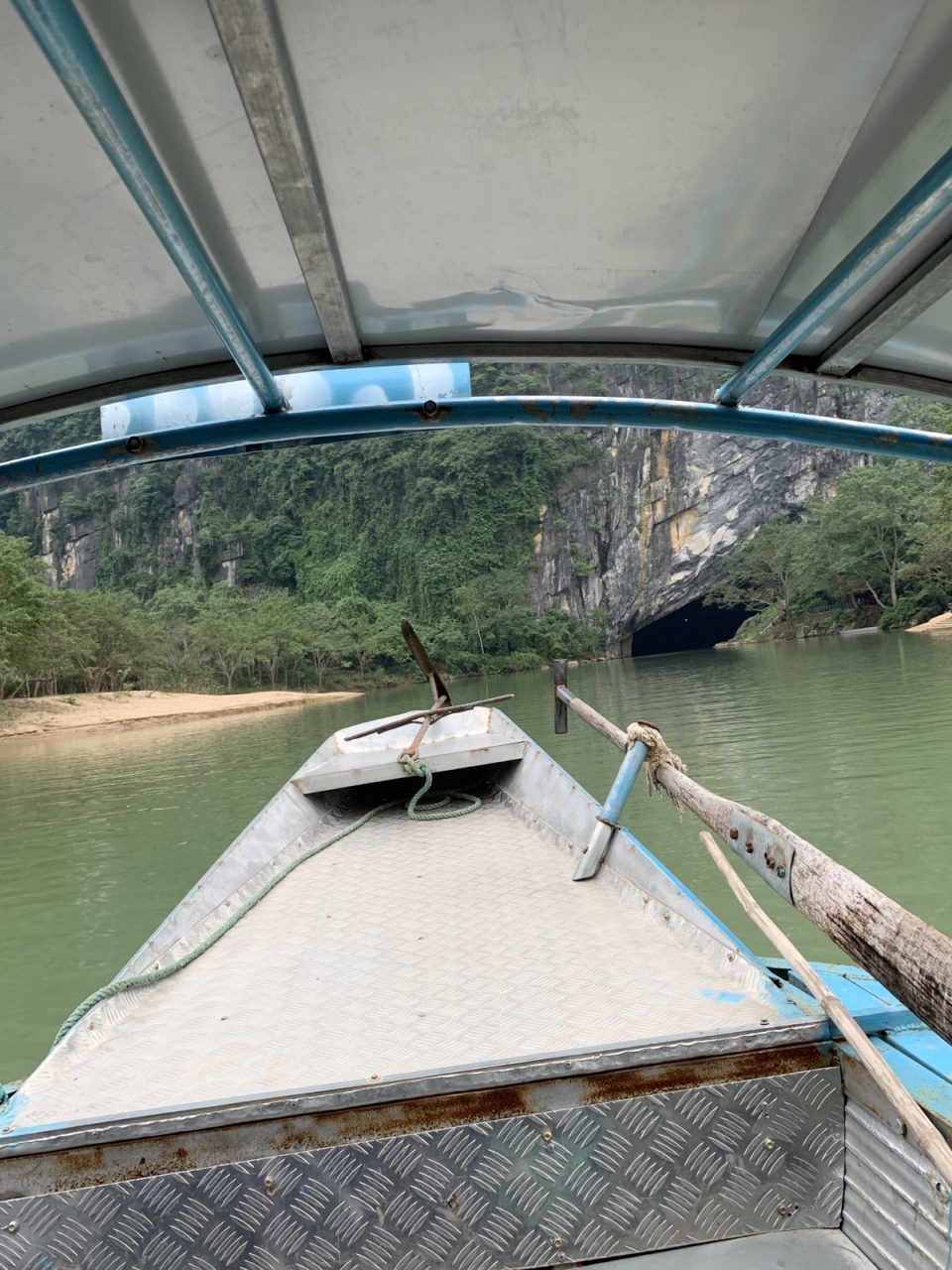 Da bleiben wir dann doch lieber bei unserem kleinen Höhlenausflug in die Phong Nha Höhle 😀. Nach einer Fahrt mit dem 🚐 durch unzählige Reisfelder geht es wieder einmal auf ein Boot…